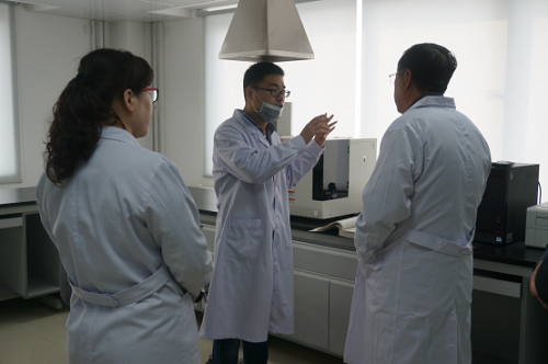 王會(huì)長在理化實(shí)驗(yàn)室聽取員工匯報(bào)操作規(guī)范要求